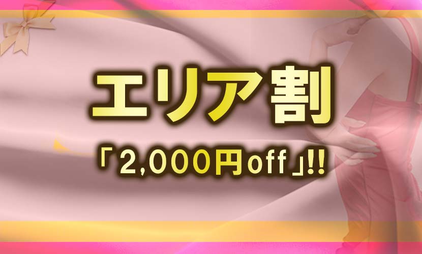 【エリア割2,000円オフ】と記載があったら、当該ルームのご利用で、コース料金2,000円割引適用いたします!