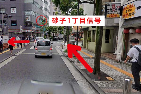 2.銀座街やコメダ珈琲も通り過ぎ、そのまま真っすぐ進み「砂子1丁目」の信号を左折します。